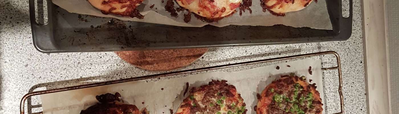 Den ene bestod af hakket oksekød og ærter (min absolutte yndlings pizza) og den anden bestod af skinketern, majs og ris. (Så vidt jeg husker)