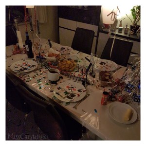 Der blev altid pyntet op, med en masse guirlander og andet spændende pynt. Der var bordbomber, champagnepropper og hvad hjertet ellers begærer 😉